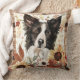 Border Collie Dog Fall Watercolor Flowers Cushion
