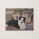 This lovely border collie jigsaw puzzle will keep everyone happy for hours. This distinguished border collie is called Badger, he was the gentlest collie you could ever imagine. This picture is a print from my original soft pastel pet portrait that I painted of him, I used a photograph to work from. The title of the painting is "Keeping An Eye On The Girls" because this particular border collie wouldn't harm a thing, he'd just let the hens peck around him. I think this original farm dog art image makes an interesting jigsaw puzzle because there's a lot of colour tones and textures to work with and it has a degree of difficulty too. Badger the border collie and chickens will be a great gift for someone special, or maybe a well deserved treat for yourself.