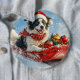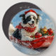 Border Collie Dog in Sledge Let it Snow Christmas 6 Cm Round Badge