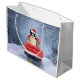 Border Collie Dog in Snow sitting in Christmas Large Gift Bag