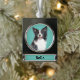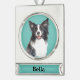 Adorable Christmas keepsake ornament features a watercolor Border Collie dog portrait on aqua background. Customise with name or special message