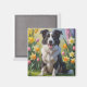 Border Collie Dog Spring Flowers Painting Magnet