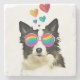 Border Collie Dog with Hearts Valentine's Day Stone Coaster