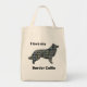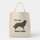 Border Collie dog silhouette yellow, blue and black grid lines abstract pattern. Personalize with your name or your dogs name below the cute dog shape. Celebrate the beautiful bond between you and your mom with this adorable reusable bag that not only showcases your love for your furry friend but also makes a thoughtful and practical Mother's Day Gift.