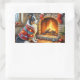 Border Collie Fireplace with Christmas Lights Rectangular Sticker