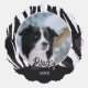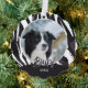 Border Collie Fur Pattern Dog Name Photo Christmas Paper Ornament. The background is black and white border collie fur pattern. Personalise the ornament with your dog`s photo, name and year of birth. A lovely holiday keepsake for a border collie owner.