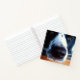 This square notebook features my close-up photograph of an adorable black and white Border Collie Heeler mix rescue dog snout on the front and back of the notebook. Fill in the template fields, remove the text or click customise to select a typeface style, size, and colour you prefer.