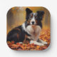 Border Collie in Autumn Leaves Fall Inspire Paper Plate