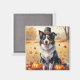 Border Collie In Autumn Leaves Thanksgiving Art Magnet