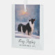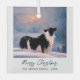 Border Collie in Winter Snowy Landscape Christmas Holiday Glass Ornament. Calm winter snow landscape with a lovely black and white border collie. Merry Christmas in a trendy script. Holiday ornament for a border collie owner.