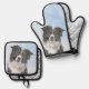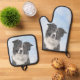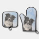 Border Collie Painting Rough Black & White Dog Art Oven Mitt & Pot Holder Set