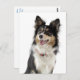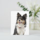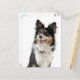 Brighten someone's day with a card! This charming greeting postcard features a portrait of a happy black, white and tan Border Collie puppy dog highlighted against a creamy white background. She is ready to help you send greetings to family, friends and customers.