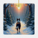 Border Collie Snowy Forest Walk Holiday Painting Ceramic Ornament