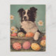 Celebrate Easter with the intelligent and energetic Border Collie in this vintage-style postcard. Featuring the beloved dog surrounded by colourful Easter eggs, blooming spring flowers, and festive seasonal accents, this design is perfect for Border Collie lovers, collectors, and fans of nostalgic holiday art. A delightful keepsake to share Easter joy.