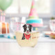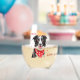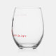 Border Collie with Red Heart Bandanna Christmas Stemless Wine Glass. Cute and happy black and white Border collie with a red bandanna around the neck with hearts.
