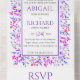 Berries and leaves border purple all in one winter wedding invitation. This lovely design features a frame made of berries and leaves, the names in violet purple and your text. The tear off RSVP card is detachable.