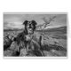 Border collie on lookout in a karst stone landscape with a gnarled hawthorn in the background - taken in the Yorkshire Dales in England.