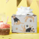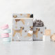 Cute Border Terrier dogs sit, stand and rollover with scattered dog bones and pawprints on a grey background.