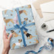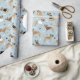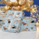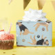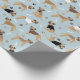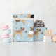Cute Border Terrier dogs sit, stand and rollover with scattered dog bones and pawprints on a blue background.