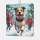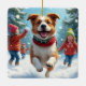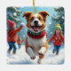 Border Terrier Snowball Fight Christmas Painting Ceramic Ornament