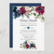 Virtual long distance bridal shower invitation featuring navy blue, white and maroon red peonies and roses with elegant handwriting typography.