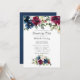 Virtual long distance bridal shower invitation featuring navy blue, white and maroon red peonies and roses with elegant handwriting typography.