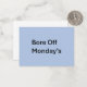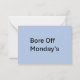 Add a cheeky twist to your notes with our "Bore Off Monday's" sarcastic flat note card! Ideal for sending a humourous message or simply brightening someone's day, this card blends wit with style, making it a perfect choice for those who appreciate a touch of sarcasm.