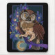 Lovely little owl in a tree full of stars holds a mystical moon pendant. Art by Erin Cooper