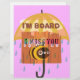 Brighten your day with our charming Bored Bee: A Rainy Day Mood design! This delightful artwork features a whimsical yellow and white bamboo bee sitting under an umbrella, surrounded by gentle raindrops. The backdrop includes a rustic wooden fence, all set against a soft light pink background. The playful text reads "I am board. I miss you," adding a touch of humour and sentiment.