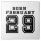 Text Born February and a large number 29. Prints, gifts, t-shirts for fun and good mood. Leap year theme. Square and round products