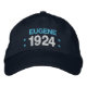 Born in 1924 or Any Year 90th Birthday V05G NAVY BLUE Hat BLUE and WHITE Embroidery with STARS Fun birthday hat that you can personalise with a sentiment, name, and year. All text is customisable, so also suitable for a 90 91 92 93 94 95 96 97 98 99 or any other year you need. You can also change the hat colour, hat style, or thread colour for a different look. DESIGN TIP: If you are using a really long name, you might need to change the text style. I recommend ATHLETIC BLOCK if you need a dense text - you'll be able to squeeze more letters in.