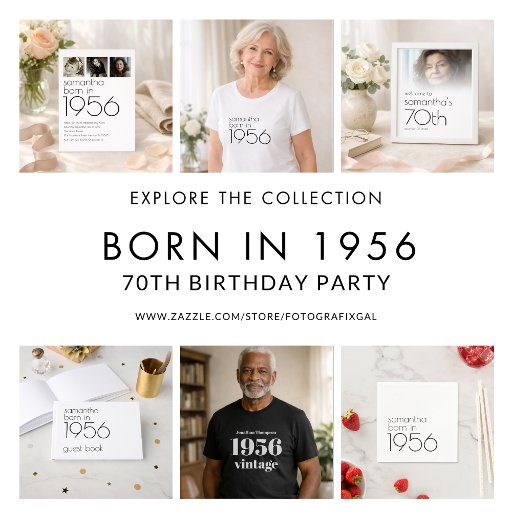 Born in 1956 3 Photos 70th Birthday Party Thank You Simple elegance. Easily personalise the text to your own requirements and replace the sample images with 3 of your own photos of different ages.