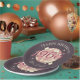 Add a touch of retro flair to your born in 1965 60th birthday party with party table decorations featuring paper plates adorned with a disco ball in pink shades against a purple background!