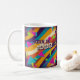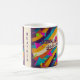Party like it's 1989 with this totally rad personalised mug! Featuring authentic 80s-inspired bold geometric shapes and vibrant neon colours including hot pink, electric green, purple, and teal with dynamic diagonal stripes, this custom mug perfectly captures the electric energy of the awesome eighties. The design includes "BORN IN 1989" text and can be personalised with any name running vertically down the side. Perfect birthday gift for anyone born in 1989, retro enthusiasts, or 80s themed celebrations. High-quality ceramic construction ensures your morning coffee tastes as radical as this mug looks!