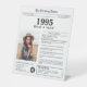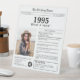 Elevate your birthday party decor for someone born in 1995 with this unique Newspaper style table sign, including a personalised photo of the recipient and a collection of fun facts and world news from the year of their birth. Designed to resemble a vintage newspaper in classic black and white style, it adds a fun and nostalgic element to the party!