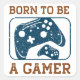 A bold and edgy design featuring two blue game controllers with a distressed texture, framed by a rectangular outline. The phrase “Born to Be a Gamer” is displayed in large, rugged orange letters, creating a cool and powerful look.
