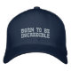 Fun, humourous embroidered baseball caps with the words "Born to be incredible" in a light blue stitch on a khaki coloured peak cap. PERSONALIZE IT ~ Choose the style and colour of your hat; change the wording; change the colour / size and style of the western style font to make it unique.