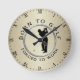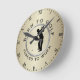 Funny golfing clock featuring a male golfer with golf club about to tee off. Sports wall clock in shades of golden brown with a sense of humour from The Golf Club Store.