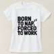 A modern streetwear graphic tee featuring the phrase “born to nap, forced to work” in bold, lowercase sans-serif font. The black, centre-aligned text with wide letter spacing creates a clean and casual look on a crisp white background. This tee is perfect for anyone who values comfort, style, and a touch of humour. Fully customisable by colour and fit—for men, women, or anyone who loves a laid-back vibe. A lighthearted reminder that while we were all born to nap, life sometimes calls us to work! 😄 Ideal for casual wear, lounging, or gifting to those who appreciate minimalist design with a funny twist.