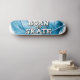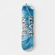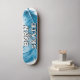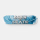 Cool skateboard featuring the wording "Born to skate" in a white modern graffiti font on a light blue feather background.
