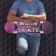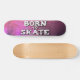 Cool skateboard featuring a pink grunge background with the wording "Born to skate" in a modern graffiti font.