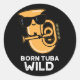Born Tuba Wild Funny Music Pun Dark BG Classic Round Sticker