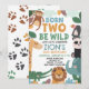 Little Boy Born Two Be Wild 2nd Birthday Invitation. This cute and whimsical boys safari or wild themed second birthday invitation features jungle and safari animals in a bohemian style. Coordinating invitations, signs, and party decorations available.