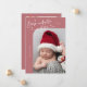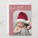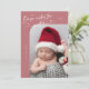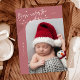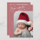 Elegant and modern Christmas theme birth announcement card featuring a hand written scrit text that says "Born under the mistletoe." This is a birth announcement card for the holiday seasons! Add your photos, birth stats, and a message! The background is pink.