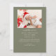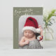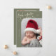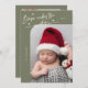 Elegant and modern Christmas theme birth announcement card featuring a hand written scrit text that says "Born under the mistletoe." This is a birth announcement card for the holiday seasons! Add your photos, birth stats, and a message! The background is sage green.