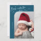Elegant and modern Christmas theme birth announcement card featuring a hand written scrit text that says "Born under the mistletoe." This is a birth announcement card for the holiday seasons! Add your photos, birth stats, and a message! The background is teal.