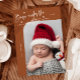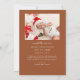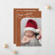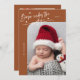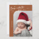Elegant and modern Christmas theme birth announcement card featuring a hand written scrit text that says "Born under the mistletoe." This is a birth announcement card for the holiday seasons! Add your photos, birth stats, and a message! The background is terracotta.