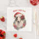 Borzoi Dog Santa Hat Red Poinsettias Christmas Napkin