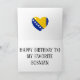 Beautiful design includes happy balloons and ticker tapes with the words "Happy Birthday", all in the colours of the Bosnia flag. Design is finished with the heart in the Bosnia flag colours and the Birthday message. Elements are fully customisable using "Customise it!" feature. This colourful birthday card is the perfect present for your friend from Bosnia.
