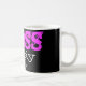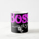 A very cool type treatment on a black background says the owner of this mug is classy, but tough. The white rose is an extra touch to set it off. The Boss Lady coffee mug makes a great gift for yourself, a coworker or your boss.